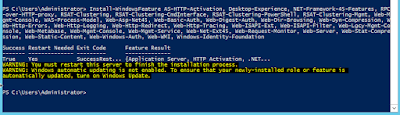 Install-WindowsFeature AS-HTTP-Activation, Desktop-Experience, NET-Framework-45-Features, RPC-over-HTTP-proxy, RSAT-Clustering, RSAT-Clustering-CmdInterface, RSAT-Clustering-PowerShell, RSAT-Clustering-Mgmt, Web-Mgmt-Console, WAS-Process-Model, Web-Asp-Net45, Web-Basic-Auth, Web-Digest-Auth, Web-Dir-Browsing, Web-Dyn-Compression, Web-Http-Errors, Web-Http-Logging, Web-Http-Redirect, Web-Http-Tracing, Web-ISAPI-Ext, Web-ISAPI-Filter, Web-Lgcy-Mgmt-Console, Web-Metabase, Web-Mgmt-Console, Web-Mgmt-Service, Web-Net-Ext45, Web-Request-Monitor, Web-Server, Web-Stat-Compression, Web-Static-Content, Web-Windows-Auth, Web-WMI, Windows-Identity-Foundation