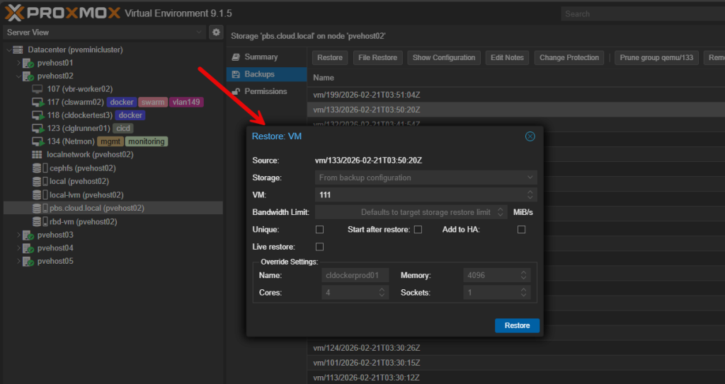 Rozwiązania takie jak PBS oferują przywracanie na poziomie plików. Przetestuj je również. Przejrzyj katalog kopii zapasowych i upewnij się, że rozumiesz, jak poruszać się po oprogramowaniu do tworzenia kopii zapasowych i przywracać dane w spokojnych warunkach. Celem tego ćwiczenia Proxmox jest wykrycie wszelkich problemów ZANIM dojdzie do rzeczywistej awarii lub utraty danych z powodu awarii, awarii sprzętu lub czegoś innego.