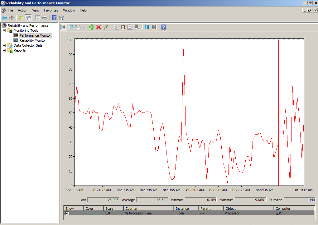 1) Performance Monitor(Monitor wydajności) – jest zestawem wykresów pokazujących pracę systemu w czasie rzeczywistym, możemy dodawać kolejne właściwości z bogatej listy, aby badać zachowanie praktycznie każdego komponentu komputera.