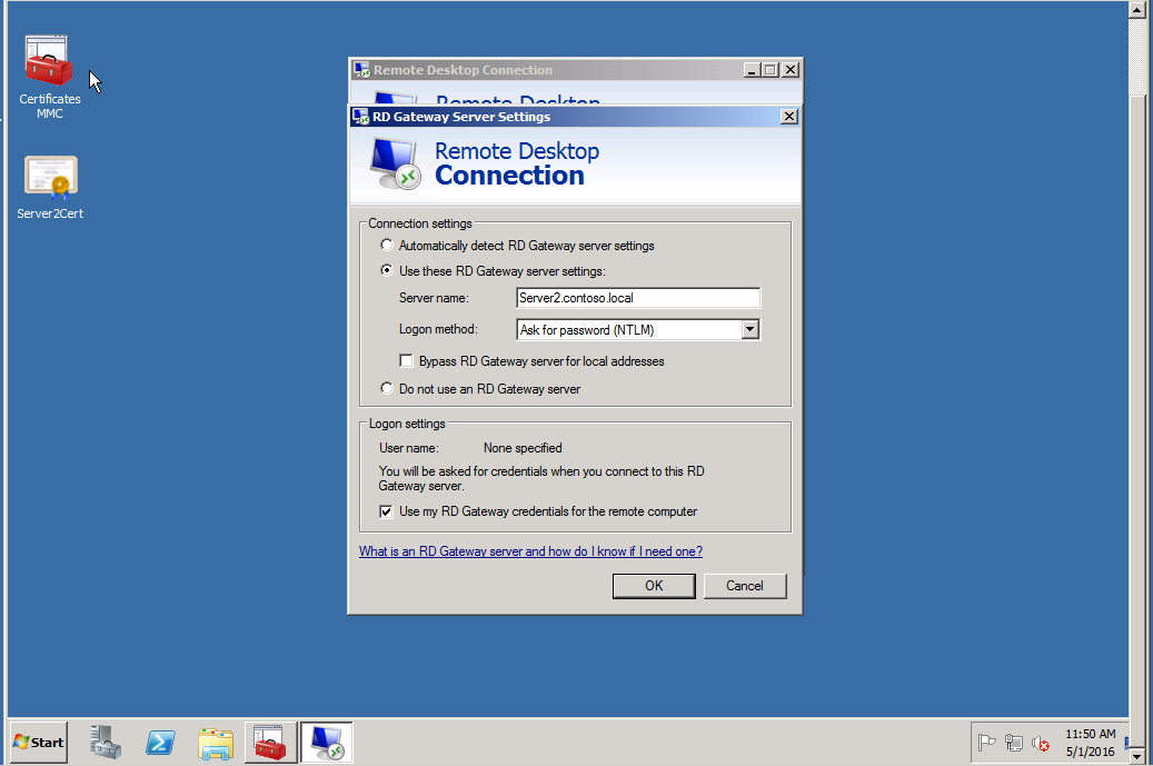 4. Podłączenie przez RD Gateway: