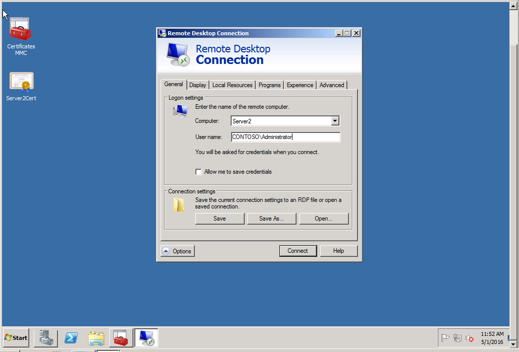 W wyniku logowania powinniśmy zobaczyć pulpit Server2.