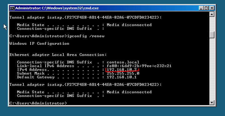 Poniżej widzimy że adres 192.168.10.2 został nadany.