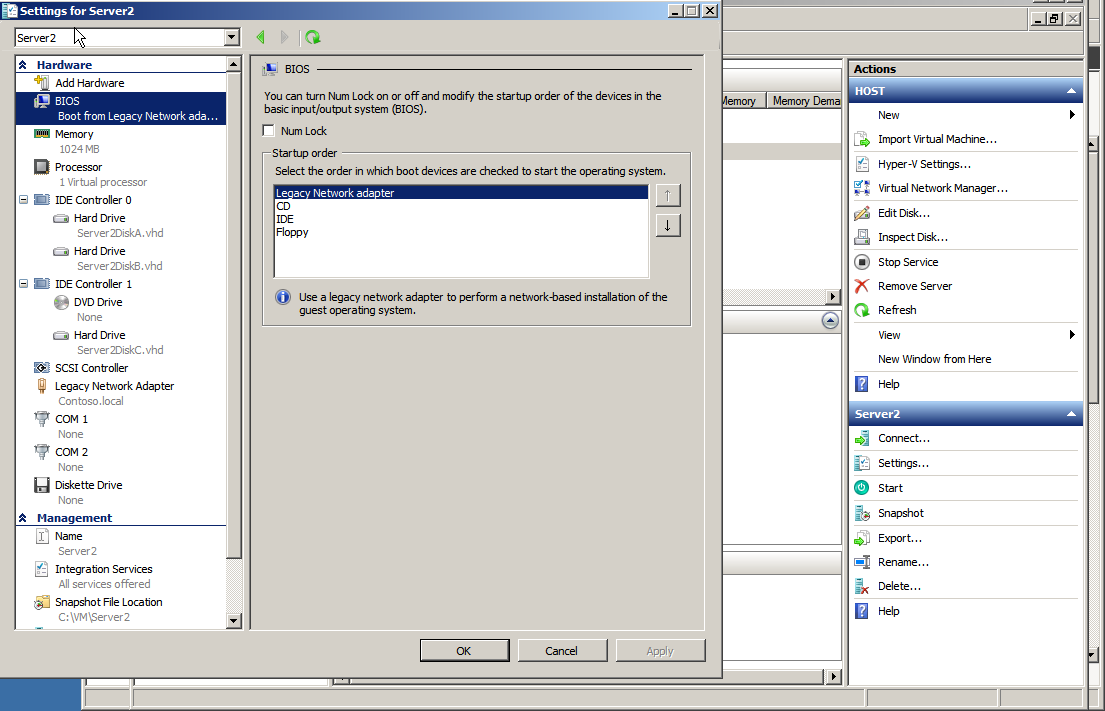 2. Host – maszyna fizyczna/ Wirtualna z obsługą Hyper-V (min. 8GB RAM, dysk min 100GB) – na której później skonfigurujemy 3 poniższe maszyny wirtualne,