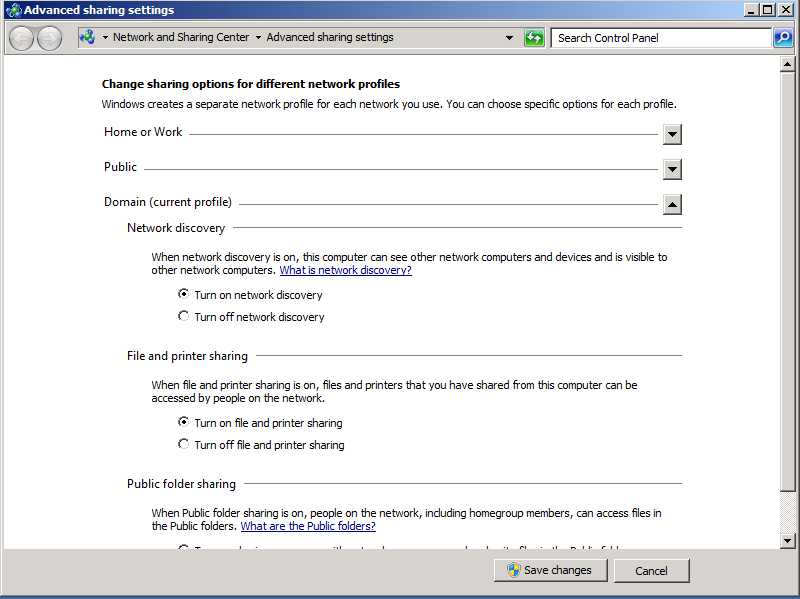 Wybieramy Turn on network discovery oraz Turn on file and printer sharing.