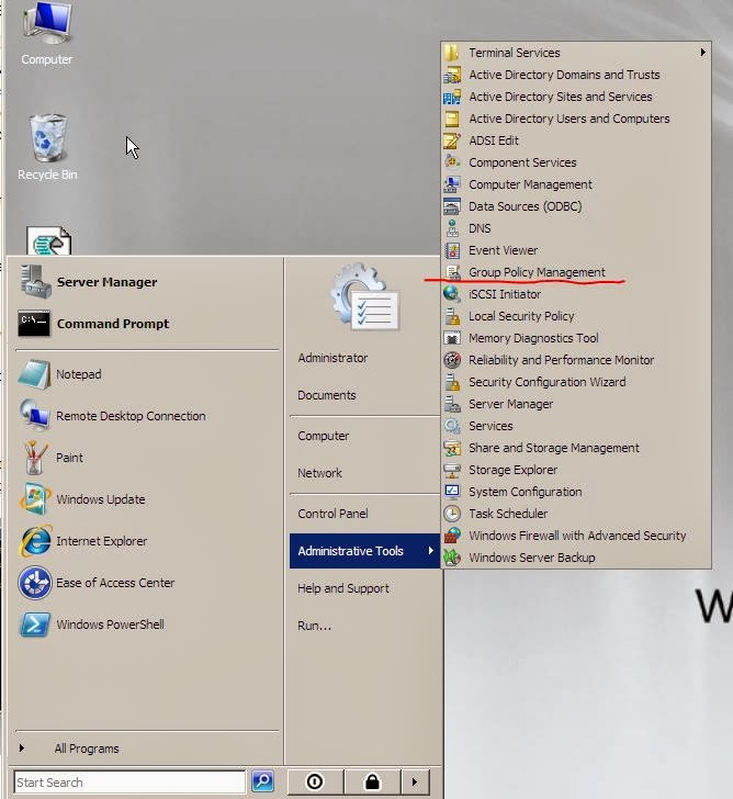 Uruchamiamy konsole Group Policy Managment z Administrative Tools: