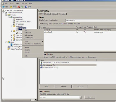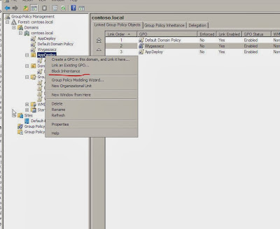 Możemy tworzyć oraz jednocześnie przyłączyć nową zasadę w odpowiedni punkt naszej organizacji, np do jednostki AppDeploy, przykład poniżej: