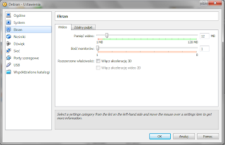 – System – przydziela wielkość pamięci ram (max. 50% dostępnej dla systemu fizycznego)dla maszyny wirtualnej, informacje o kolejności bootowania systemu oraz procesora.