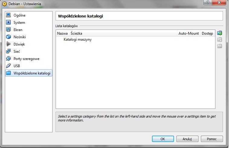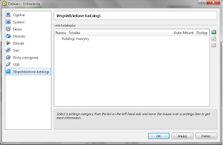 -Współdzielone katalogi – możemy zmapować katalogi z dysku fizycznego do wirtualki, gdy potrzebujemy mieć dostęp do plików z dysku.