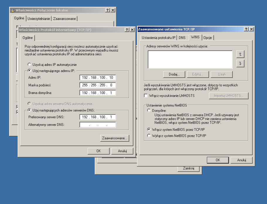– na zakładce WINS zaznaczona opcja – włącz system NetBIOS przez TCP/IP,